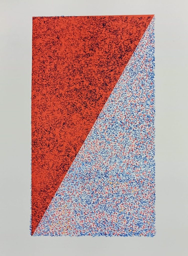 In this sense, her art is not representational but ontological: it expresses being itself. Her prints and mixed-media works emerge as consciousness-fields, where intention dissolves into process and form arises as an echo of inner stillness. The discipline of printmaking — its repetition, resistance, and demand for patience — becomes an embodied metaphor for spiritual practice. Each layer, impression, and pressure is an extension of the artist’s breath; each mark becomes a scripture of silent devotion.